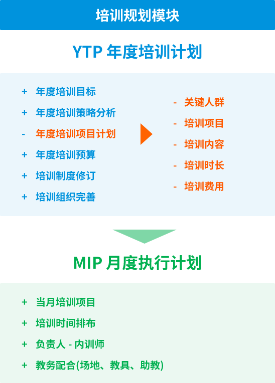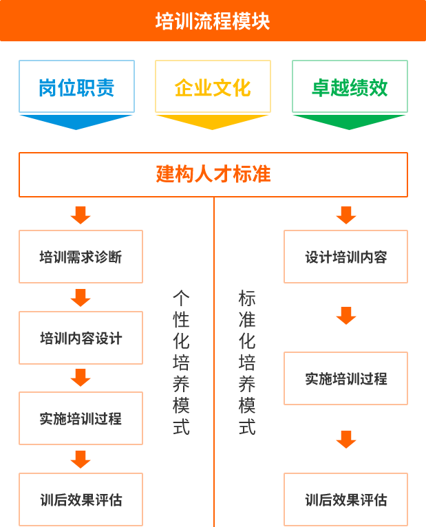 企业建立人力资源培训开发体系的目的就是让企业内处于各层级岗位上的员工都能实现更高的绩效水平,并在满足企业对当前岗位的知识技能、能力素质要求时能够挑战更高的岗位。培训项目规划模块的目的就是为处于不同层级岗位或不同发展阶段的员工,有明确的学习目标、清晰的培训标准、对应的课程项目、严谨的培训效果考核手段和正向的激励策略。